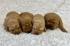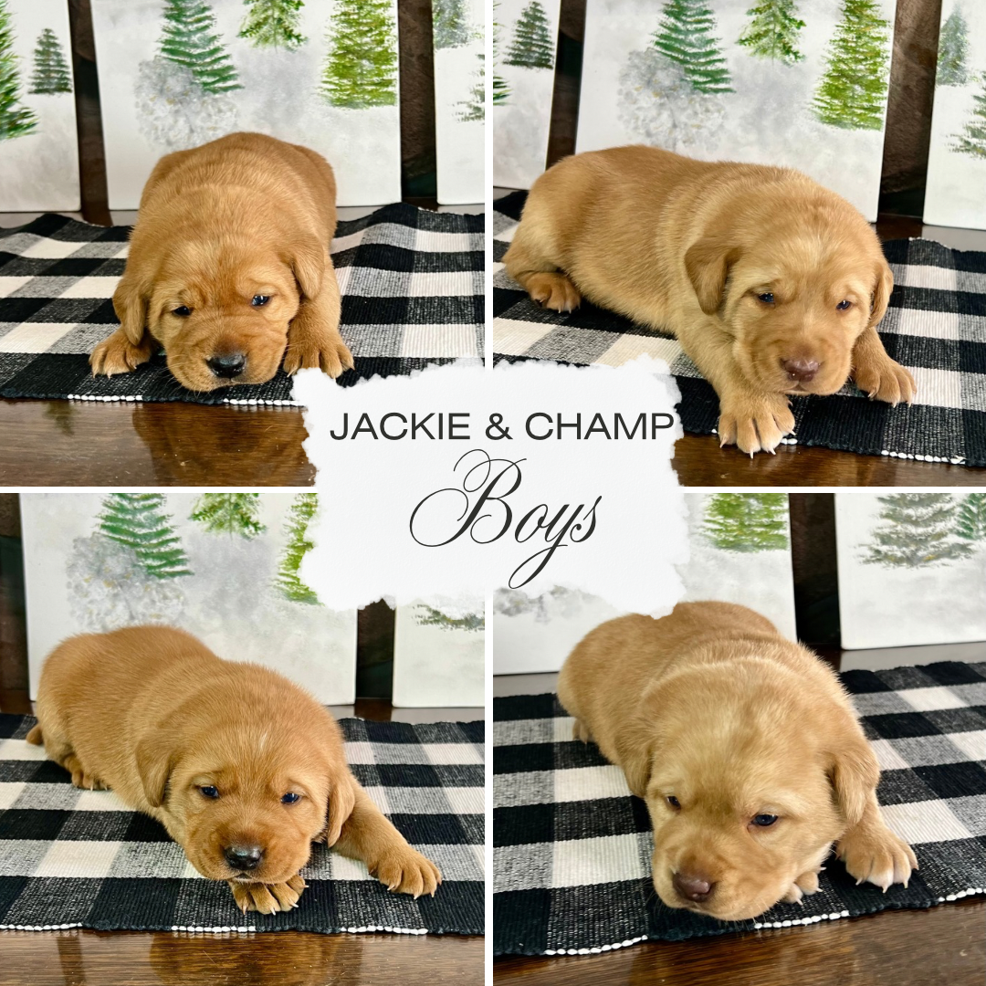 Jackie and Champ have a beautiful litter of Fox red puppies. They are vet checked, dewormed, and well socialized. They come with a health guarentee for common labrador genetic diseases, and hips and elbows. They are 8 weeks old and ready to go home on Feb 21. Limited registration unless otherwise approved.